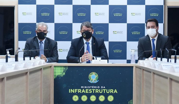 Estudo de demanda apresentado nesta terça-feira (18), no Ministério da Infraestrutura, mostrou a viabilidade do Corredor Oeste de Exportação. A apresentação foi feita pelo coordenador do Plano Estadual Ferroviário, Luiz Henrique Fagundes, em uma reunião com a participação dos governadores Reinaldo Azambuja (MS) e Ratinho Junior (PR), do ministro da Infraestrutura, Tarcisio Gomes de Freitas e do secretário Jaime Verruck, da Semagro (Secretaria de Meio Ambiente, Desenvolvimento, Produção e Agricultura Familiar)