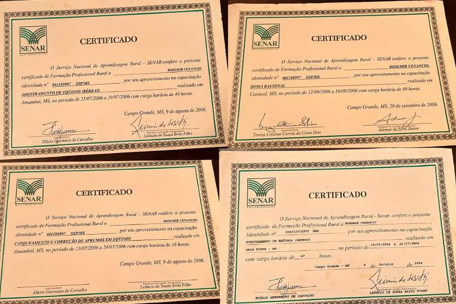 A história de Rosemir Venâncio com os cavalos começou cedo, no município de Dourados. “Quando eu tinha cinco anos meu pai fez um arreio para mim e me botou em cima para lidar com o gado”, relembra. Desde então, a paixão pelo trato com os animais só aumentou e ele seguiu buscando conhecimento na área até encontrar um divisor de águas na carreira: o Senar/MS.