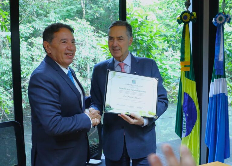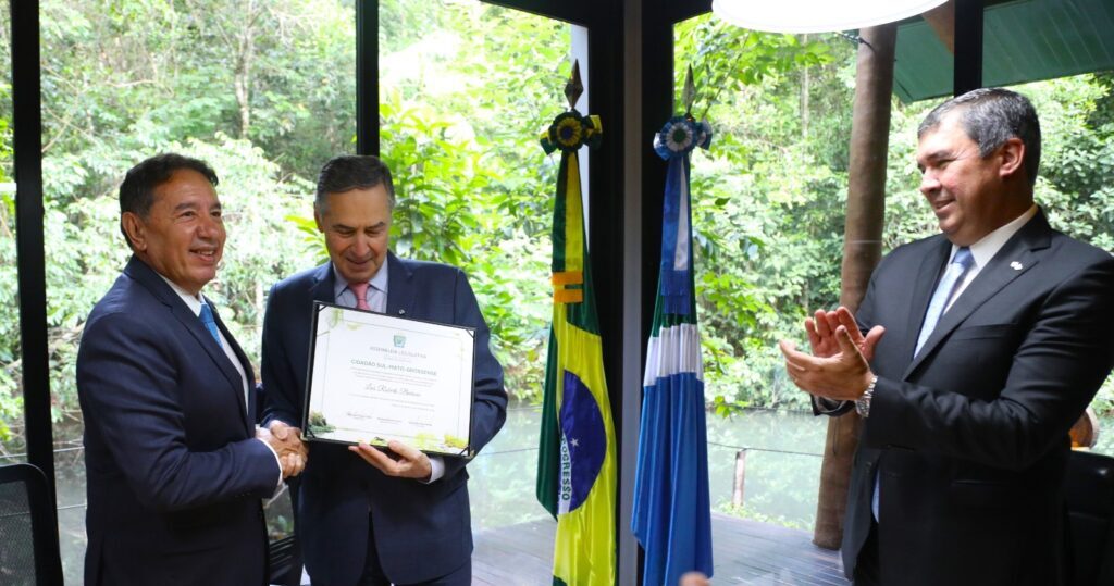O presidente da Assembleia Legislativa de Mato Grosso do Sul, deputado Gerson Claro, entregou nesta segunda-feira (2) o título de cidadão sul-mato-grossense ao presidente do STF (Supremo Tribunal Federal) e do CNJ (Conselho Nacional de Justiça), ministro Luís Roberto Barroso.