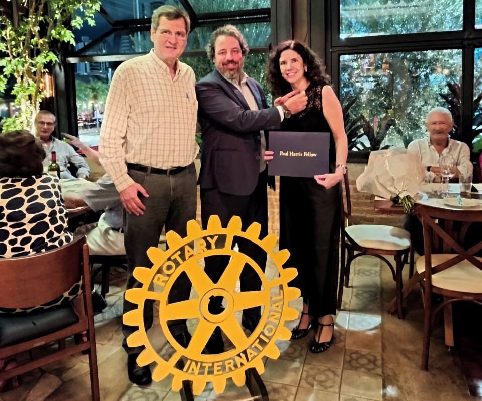 A noite foi marcada pela homenagem surpresa à Companheira Renata Rezende Kroetz, que recebeu o distintivo Paul Harris, em reconhecimento à doação de 1.000 dólares feita pelo clube à Fundação Rotária.