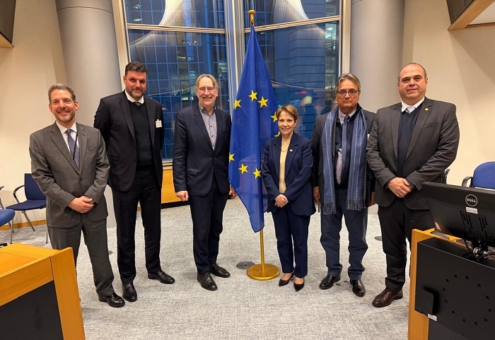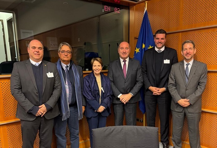 Outra agenda da missão, na terça (28), foi a reunião com o presidente do Comitê Internacional do Parlamento Europeu, Bernd Lange. O principal assunto foi o comércio bilateral e como o acordo Mercosul-UE e a Lei Antidesmatamento (EUDR) impactam a relação entre Brasil e União Europeia.