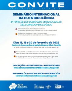Os interessados já podem acessar o site www.seminariointernacionalbioceanica.ms.gov.br para obter mais informações sobre o Seminário e se inscrever gratuitamente.