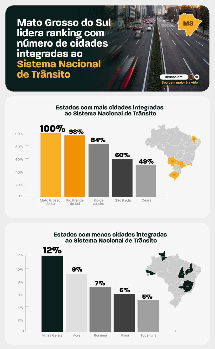 Mato Grosso do Sul lidera ranking de cidades integradas ao Sistema Nacional de Trânsito