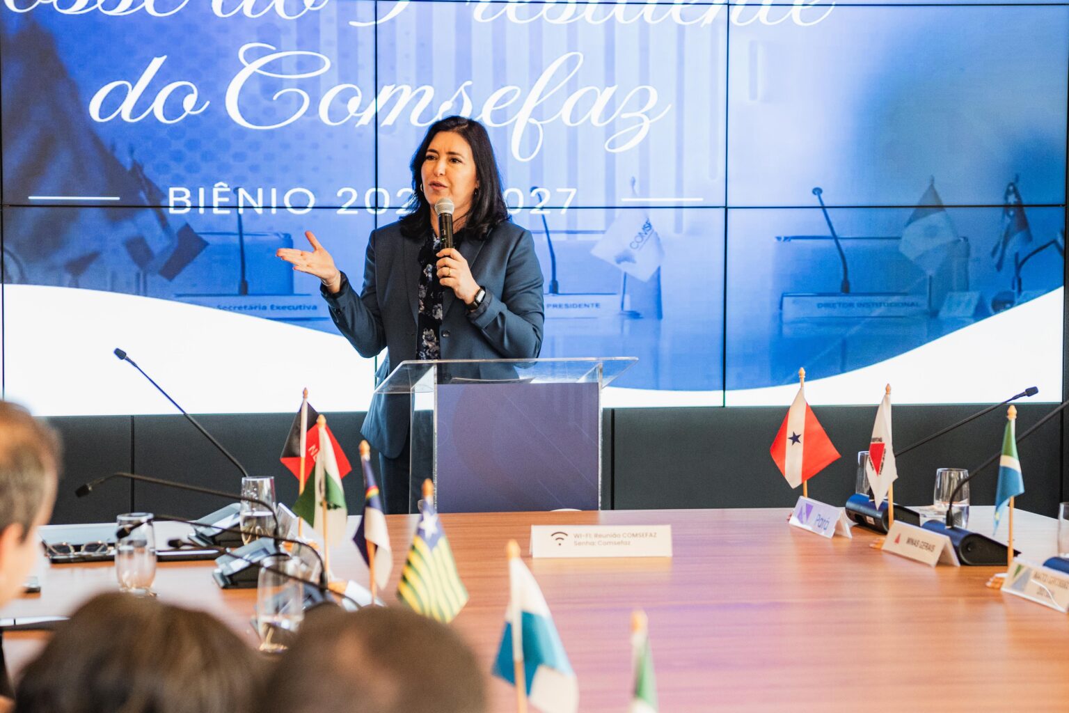 Amiga pessoal do presidente Flávio César, a ministra do Planejamento e Orçamento do Governo Federal, Simone Tebet, iniciou o discurso destacando o orgulho de ver um conterrâneo sul-mato-grossense assumir a presidência do Comsefaz pela primeira vez.