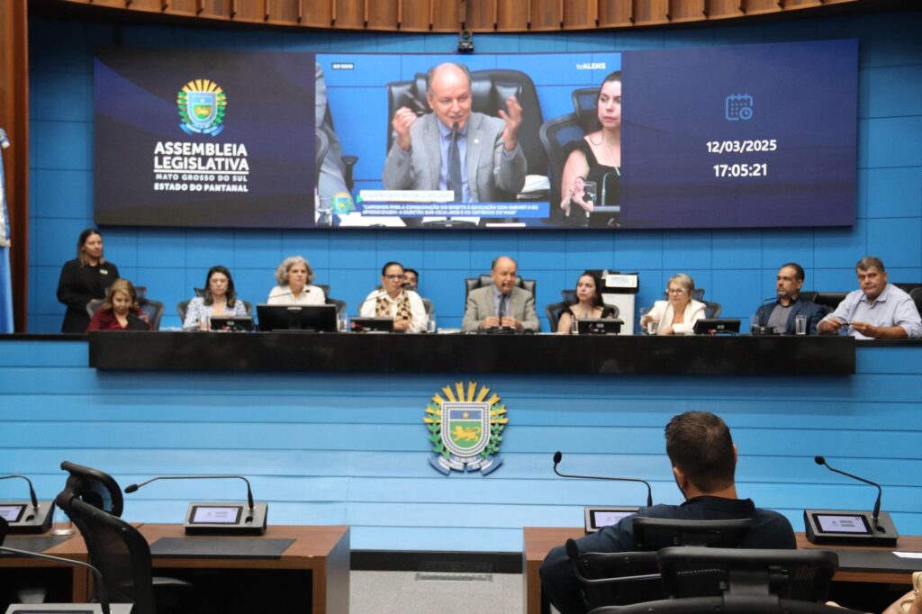 Na tarde desta quarta-feira (12), a Assembleia Legislativa de Mato Grosso do Sul realizou a Audiência Pública com o tema “Caminhos para a consagração do direito à educação com garantia da aprendizagem: a questão dos celulares e os critérios do VAAR”.