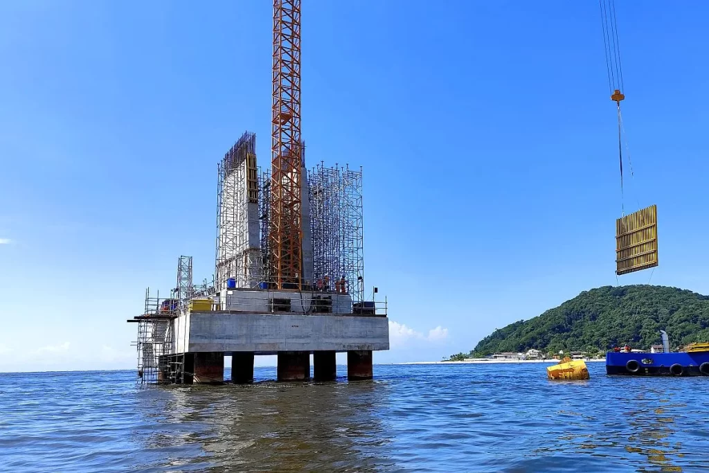 Essa etapa se soma a tudo o que está em andamento. Ao longo do último mês teve continuidade a execução das estacas do chamado trecho pré-moldado, todo aquele que não envolve a parte estaiada, envolvendo atividades de cravação, escavação e concretagem, além da fabricação e lançamento das vigas longarinas, que formam a base por onde passará a via. Foi finalizada também a concretagem dos blocos e pilares das torres principais do trecho estaiado.
