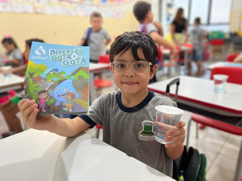 Em Nova Andradina, a equipe da Sanesul (Empresa de Saneamento Básico de Mato Grosso do Sul) atendeu ao convite da Escola Municipal Pingo de Gente e realizou uma palestra educativa sobre a importância da água e do consumo consciente desse recurso essencial para a vida.