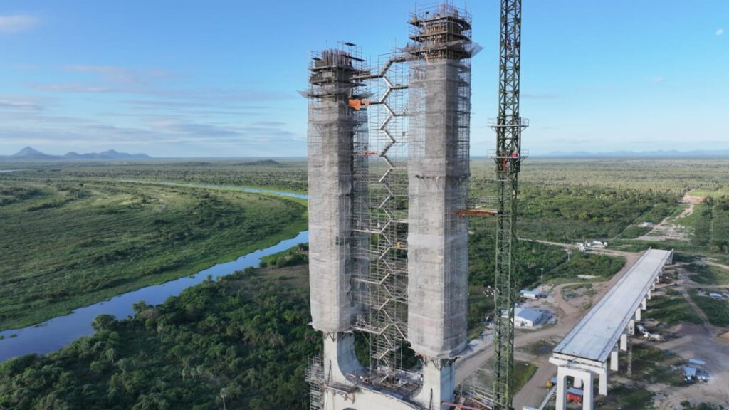 A Ponte Bioceânica, que ligará Carmelo Peralta (Paraguai) e Porto Murtinho (Brasil), avança a bom ritmo, atingindo 68,12% de conclusão até março de 2025.
