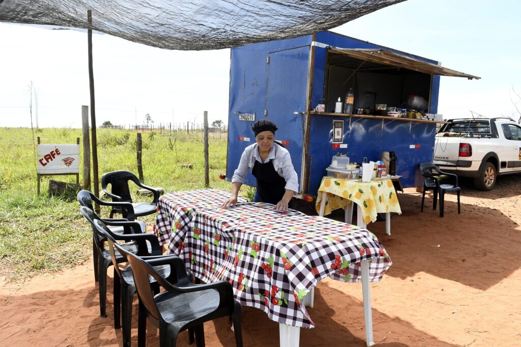 A rotina de Regiane Alves, de 45 anos, começa antes do amanhecer. Às 4h30, ela estaciona seu trailer de lanches, acoplado a um veículo, no km 96 da MS-040 – rodovia que liga Campo Grande a Santa Rita do Pardo, no leste de Mato Grosso do Sul. Conhecido como ‘Café da Regi’, o pequeno estabelecimento se tornou um ponto de parada para cerca de 50 motoristas que diariamente buscam um cafezinho, uma refeição e o acesso à internet oferecido pela comericante.