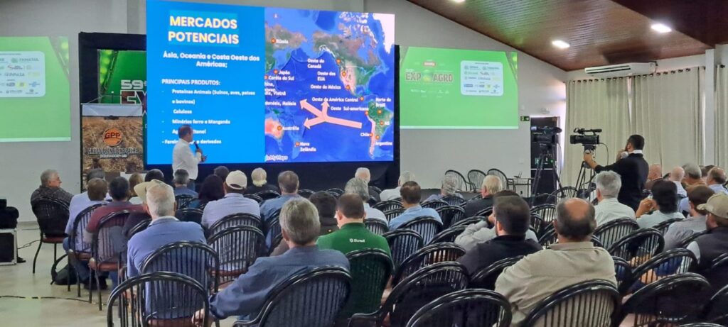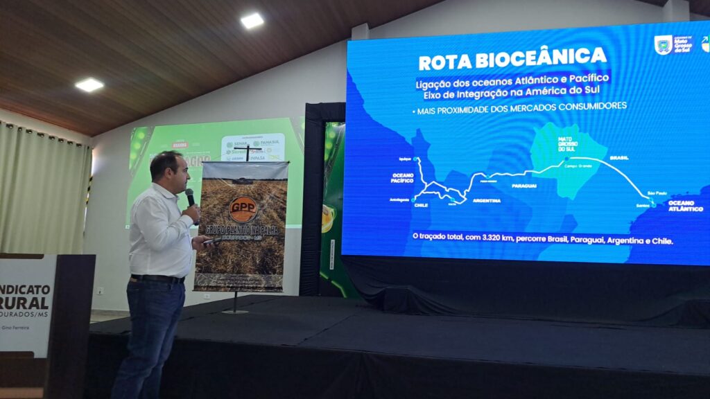 Voltada a produtores rurais, empresários e lideranças políticas, a apresentação destacou os avanços estruturais e institucionais da Rota Bioceânica, especialmente a construção da Ponte Internacional sobre o Rio Paraguai, que ligará Porto Murtinho a Carmelo Peralta, no Paraguai.