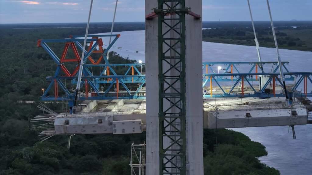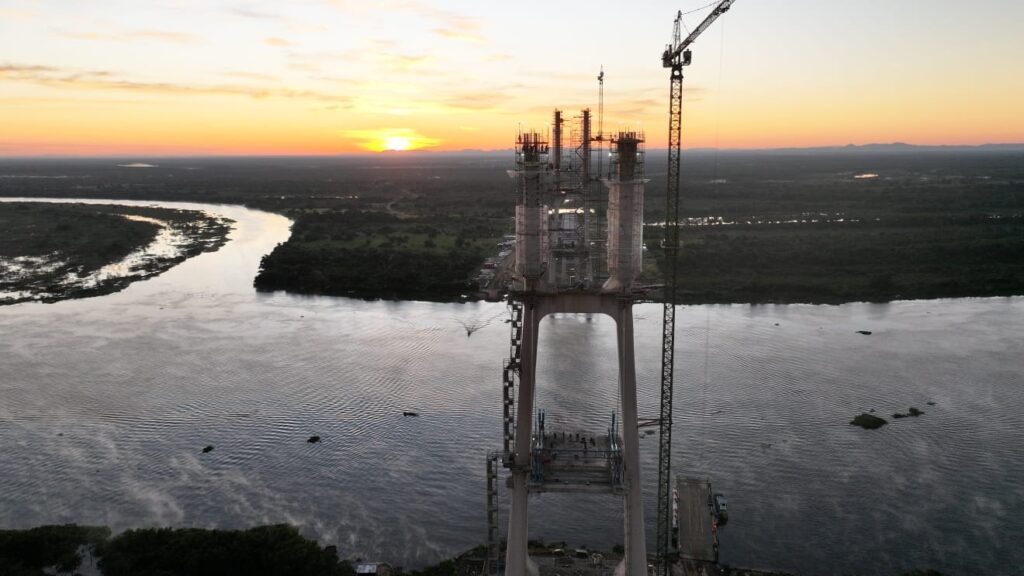 A ponte internacional que conecta Carmelo Peralta (Paraguai) a Porto Murtinho (Brasil) continua avançando como parte fundamental do Rota Bioceânica de Capricórnio, com 76% de conclusão geral até maio de 2025.
