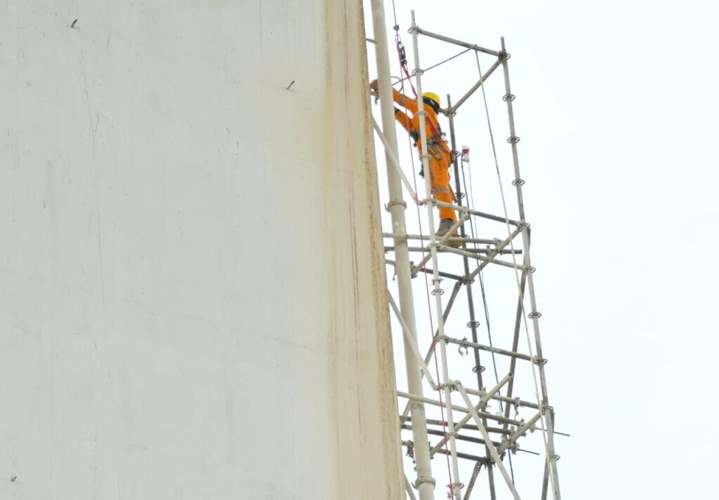Um dos principais focos de prevenção é o trabalho em altura. O dia começa com inspeções rigorosas de andaimes e palestras de segurança de cinco minutos, que servem como treinamento prático. “Essas palestras diárias são essenciais para reforçar a conscientização sobre segurança em cada tarefa”, explicou o gerente da área.