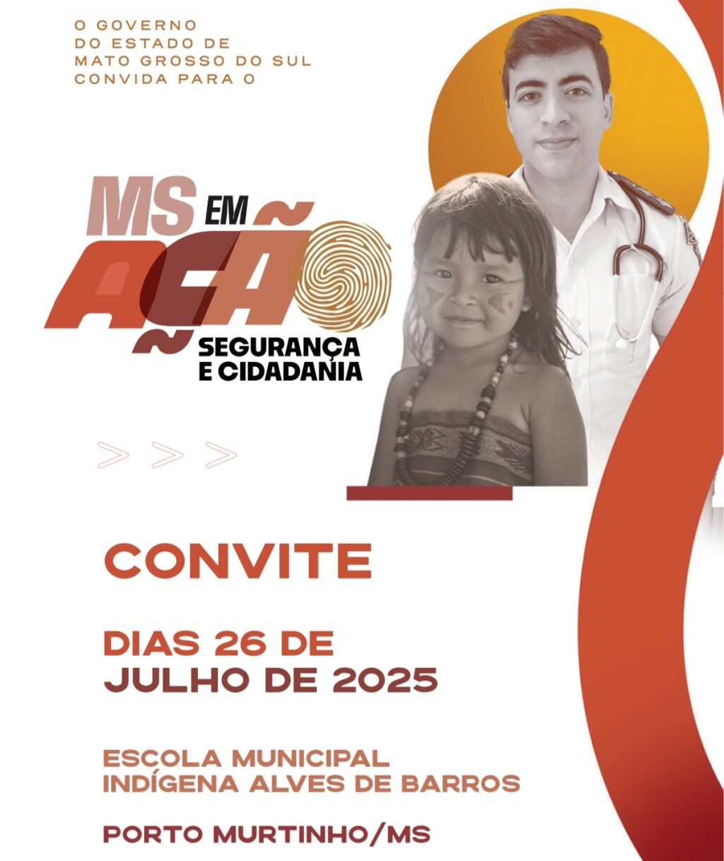A comunidade indígena da Aldeia Alves de Barros, localizada no município de Porto Murtinho, recebe no próximo dia 26 de julho com a sétima edição do programa “MS Em Ação – Segurança e Cidadania”, promovido pela Secretaria de Estado de Justiça e Segurança Pública (Sejusp), em parceria com a Secretaria de Estado de Cidadania (SEC) e mais de 40 instituições pública e privada.