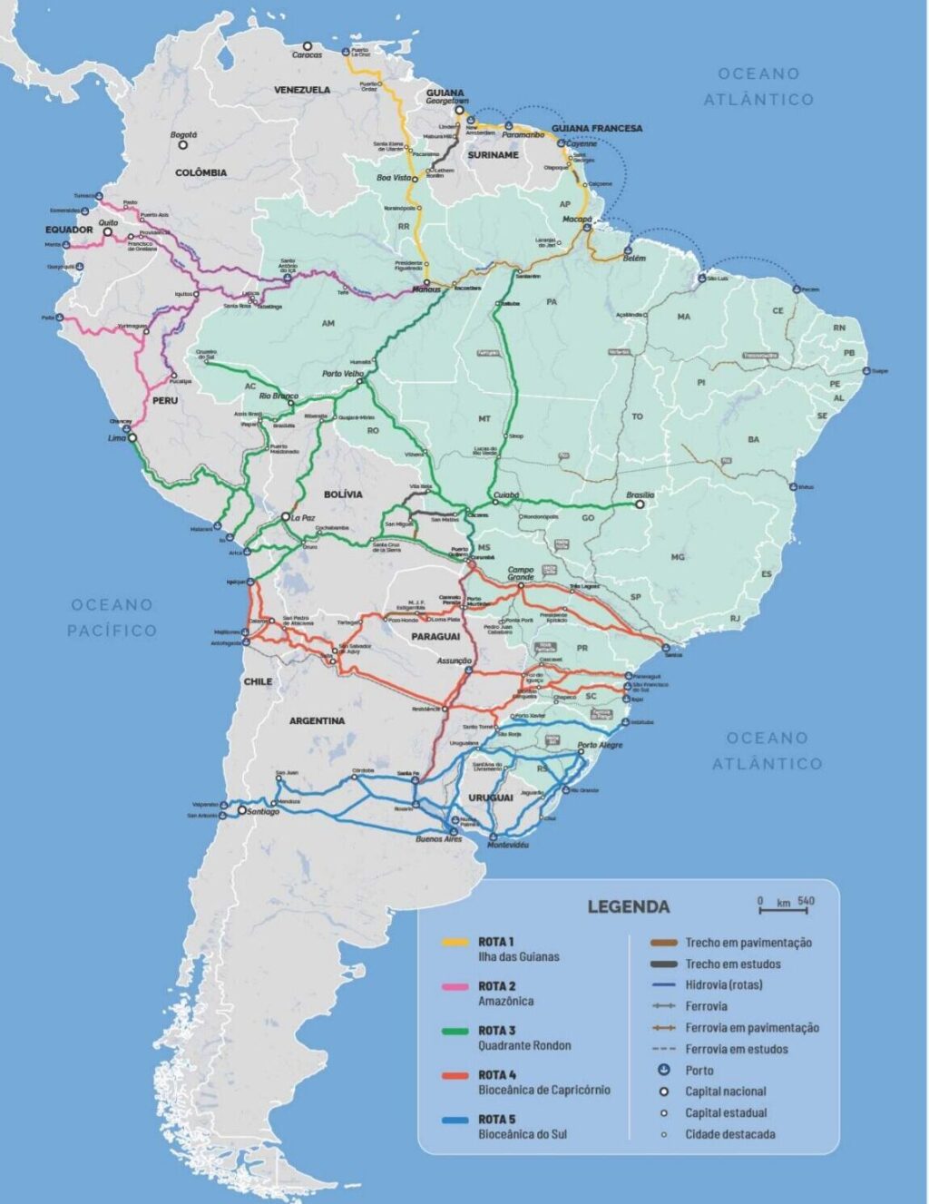 Composto por cinco rotas prioritárias, o projeto foi elaborado após consulta aos 11 estados brasileiros que fazem fronteira com países sul-americanos e tem como objetivo reduzir custos logísticos, encurtar distâncias e ampliar a competitividade do comércio exterior brasileiro
