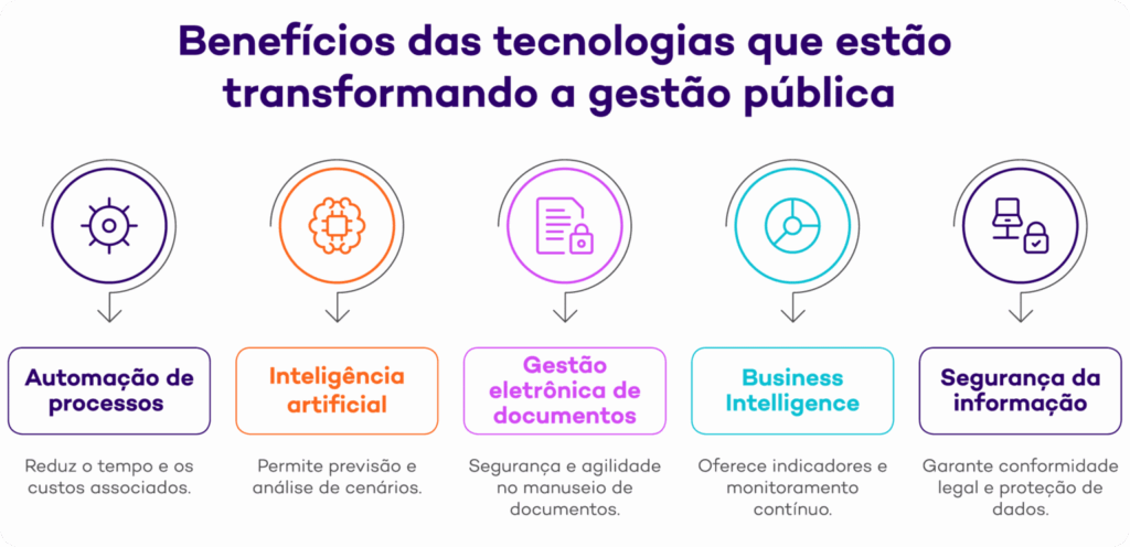 A automação é uma das tecnologias que mais impactam a gestão pública. Sistemas integrados reduzem tarefas repetitivas e aceleram fluxos de trabalho. Isso significa menos papel, menos erros e mais tempo para servidores se dedicarem a demandas estratégicas.