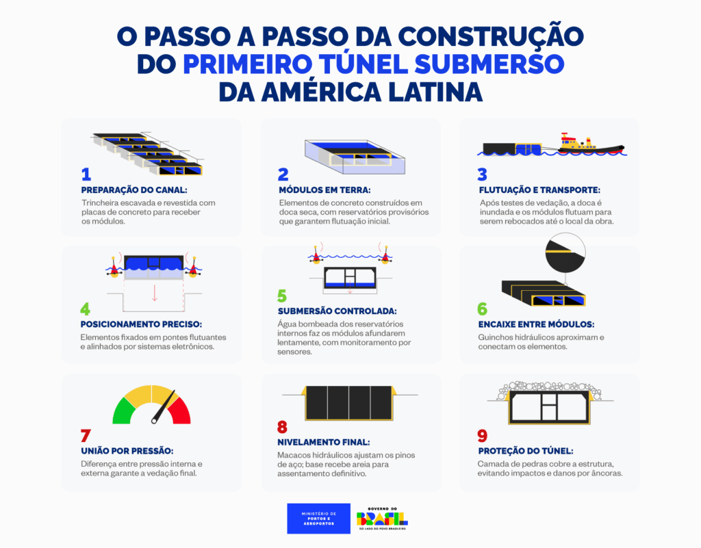 NOVO PAC – O ponto de virada ocorreu em 2024, quando o Governo Federal incluiu a obra entre as prioridades do Novo PAC (Programa de Aceleração do Crescimento). Pela primeira vez, havia clareza de orçamento, cronograma e modelo de execução. Em agosto de 2025, foi lançado o edital para a construção do primeiro túnel submerso da América Latina, com investimento estimado em R$ 6,8 bilhões.