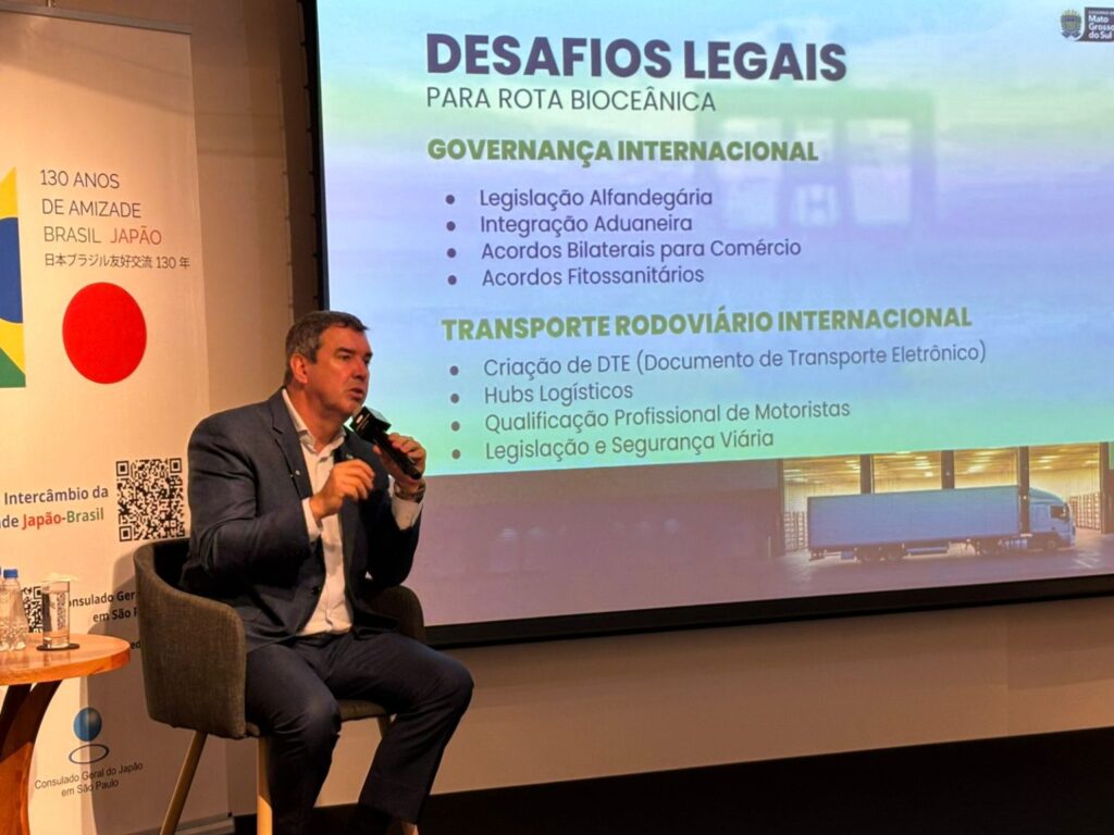 Na apresentação, o governador destacou que a Rota Bioceânica contará com mecanismos de segurança e controle, incluindo documento de transporte eletrônico, hubs logísticos, qualificação de condutores e normas específicas de segurança viária.