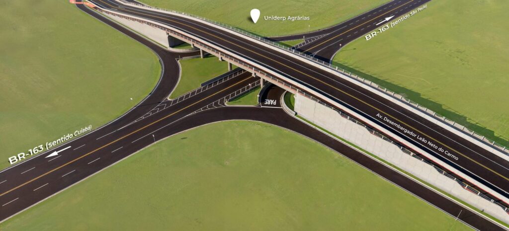 Além de otimizar o trânsito, a obra permitirá conversões nos dois sentidos da BR-163, possibilitando acesso direto e seguro tanto para Cuiabá quanto para São Paulo.