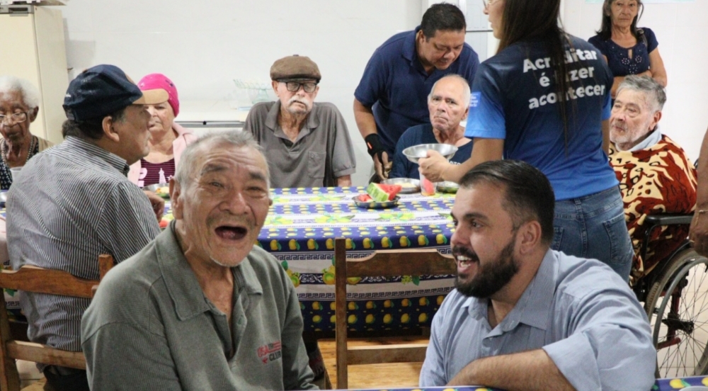 Nesta quarta-feira (1º), em comemoração ao Dia Internacional e Nacional do Idoso, o vereador Robert Ziemann em parceria com Instituto Pequeno Cidadão promoveram uma ação especial no Lar do Idoso, proporcionando um momento de alegria, cuidado e valorização para a terceira idade.