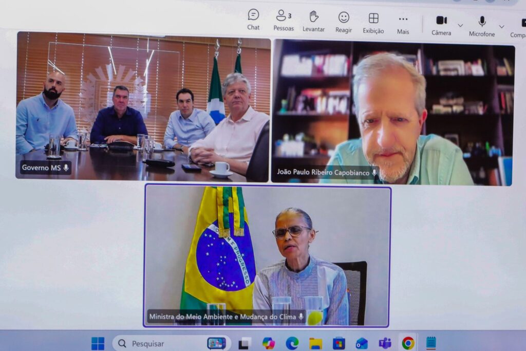 E para preparar a convenção, o governador Eduardo Riedel participou, nesta terça-feira (23), de uma reunião virtual com a ministra Marina Silva (Meio Ambiente e Mudança do Clima) e as equipes do ministério e do Governo do Estado – formada pelos secretários Jaime Verruck (Semadesc) e Rodrigo Perez (Segov), além do secretário-adjunto Artur Falcette (Semadesc).