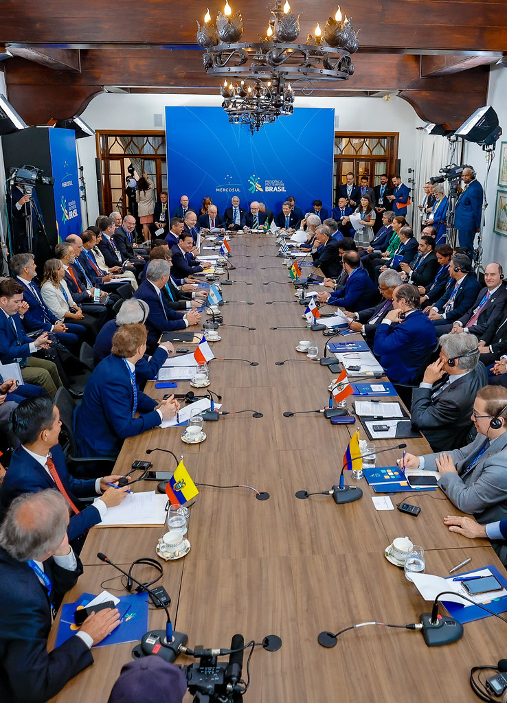 Os Presidentes dos Estados Partes do MERCOSUL, Luiz Inácio Lula da Silva, pela República Federativa do Brasil; Javier Gerardo Milei, pela República Argentina; Santiago Peña Palacios, pela República do Paraguai; e Yamandú Orsi, pela República Oriental do Uruguai, e o Ministro de Relações Exteriores Fernando Hugo Aramayo Carrasco, pelo Estado Plurinacional da Bolívia participaram da LXVII Cúpula de Presidentes do MERCOSUL, realizada em 20 de dezembro de 2025, na cidade de Foz do Iguaçu, Brasil.