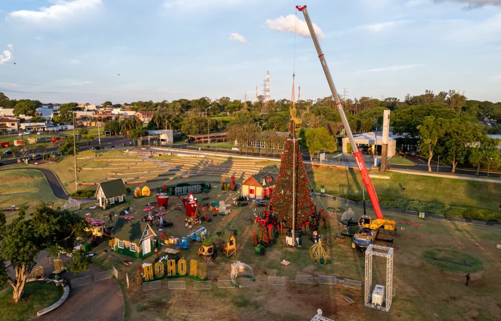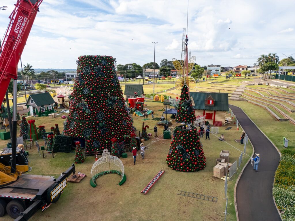 Uma estrutura impressionante, com direito a cerca de 210 mil lâmpadas e uma Árvore de Natal com altura equivalente a um prédio de oito andares, está sendo preparada para o “Natal da Família no Gramadão”, a partir de sábado (6), no Gramadão da Vila A, em Foz do Iguaçu (PR). A promoção é da Itaipu Binacional.