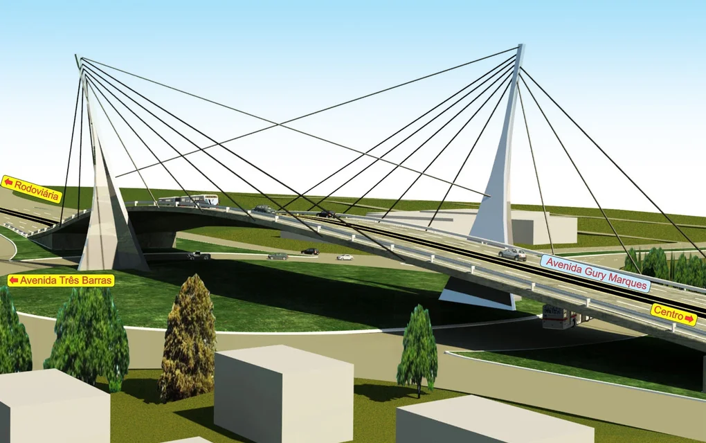 A gestão municipal desenvolveu o projeto técnico, detalhando o viaduto estaiado com pavimentação e drenagem pluvial.