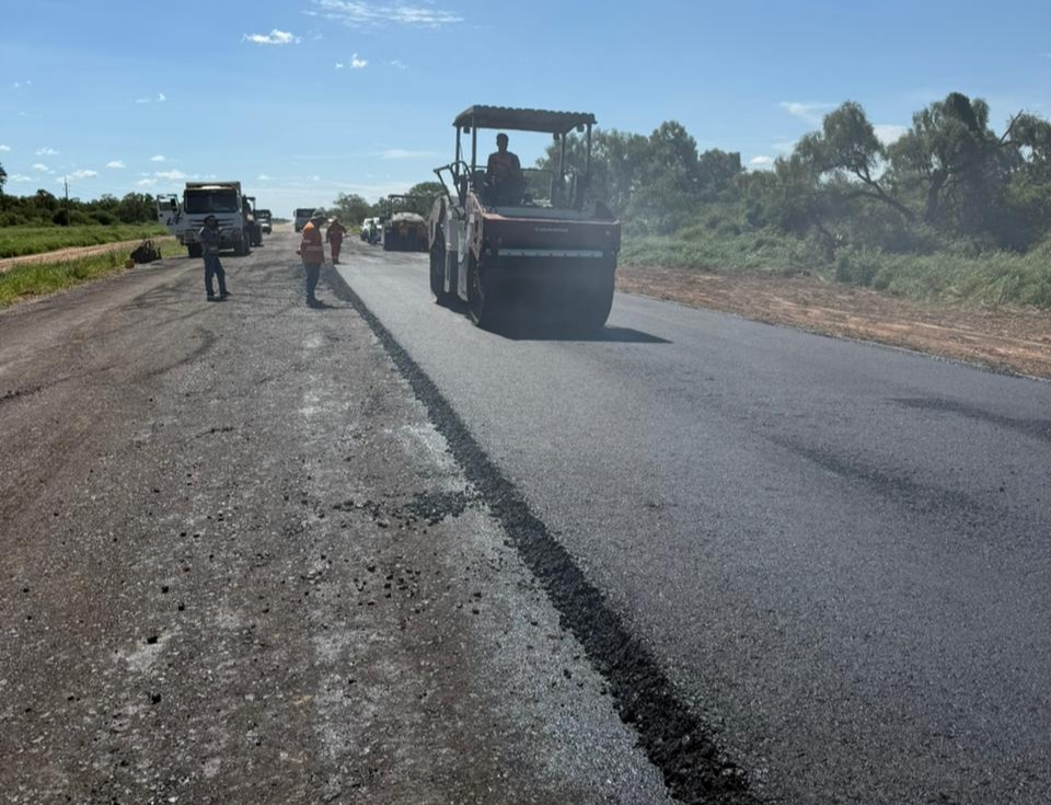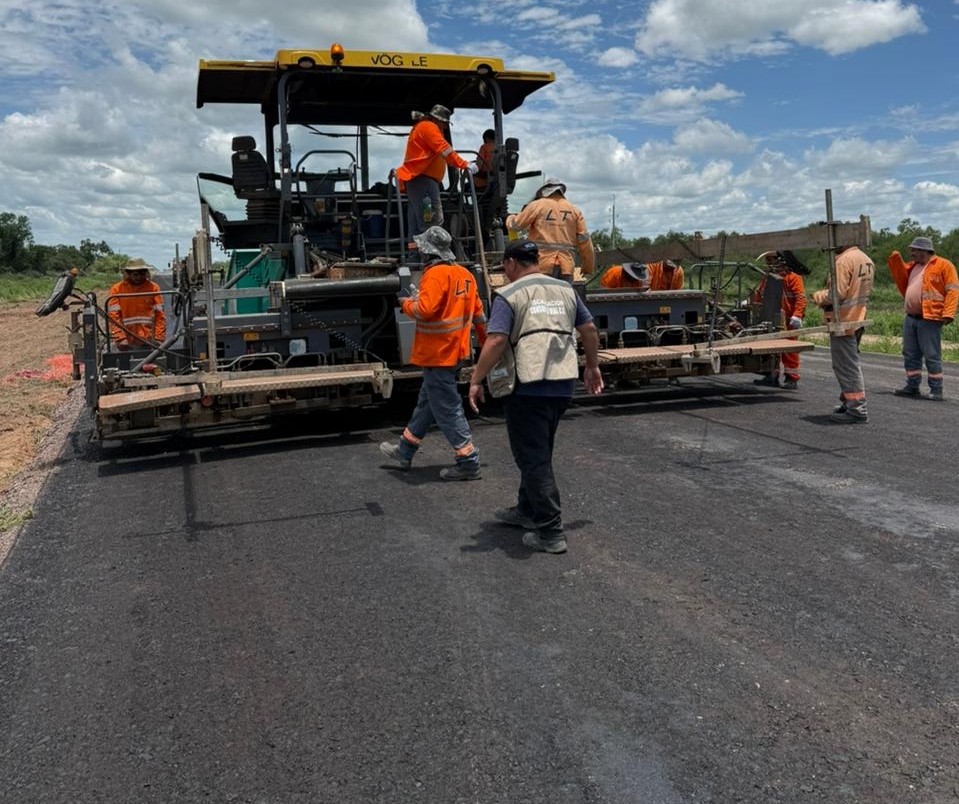 Entretanto, os trabalhos prosseguem em outras frentes, sob a responsabilidade do Consórcio do Chaco Norte, composto por Heisecke Constructora SA, Benito Roggio e Hijos SA e LTSA, com trabalhos contínuos em solo calcário, solo cimentício e aterro, que atingiram aproximadamente 75% de conclusão.