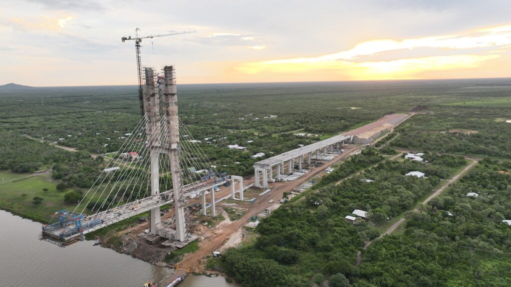 Gamboa acrescentou que os esforços agora estão concentrados na construção do tabuleiro da ponte em um trecho de 166 metros, etapa que completará a ligação. “Agora temos que atravessar e superar o rio”, afirmou. Ele também indicou que a concretagem da rampa final no lado paraguaio — a de número 27 — foi concluída, finalizando assim a construção dos pilares em ambas as margens.