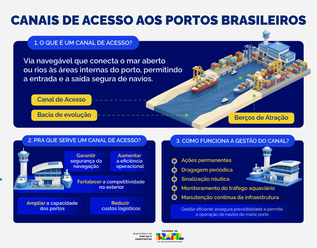 Para o ministro de Portos e Aeroportos, Silvio Costa Filho, a iniciativa representa um avanço estrutural para o setor. “Os canais de acesso são tão importantes quanto os próprios terminais portuários. Ao estruturar concessões específicas para essas áreas, estamos garantindo investimentos permanentes, mais segurança para a navegação e melhores condições para que os portos brasileiros operem com navios maiores e mais modernos. Isso fortalece a logística, reduz custos e amplia a competitividade do Brasil no cenário internacional”, afirmou.