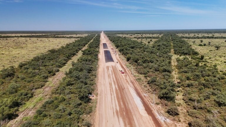 A construção da Rota PY15 da Rota Bioceânica atingiu um novo marco com o início da aplicação da primeira camada asfáltica no Lote 4, que se estende até Pozo Hondo, no departamento de Boquerón.