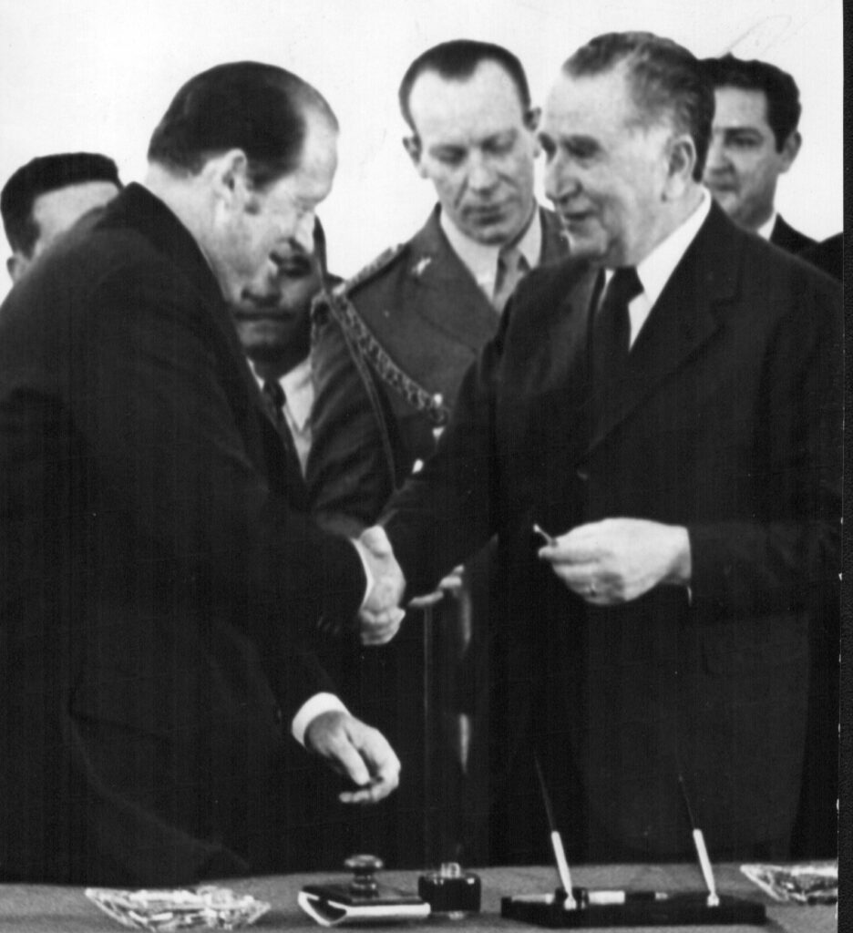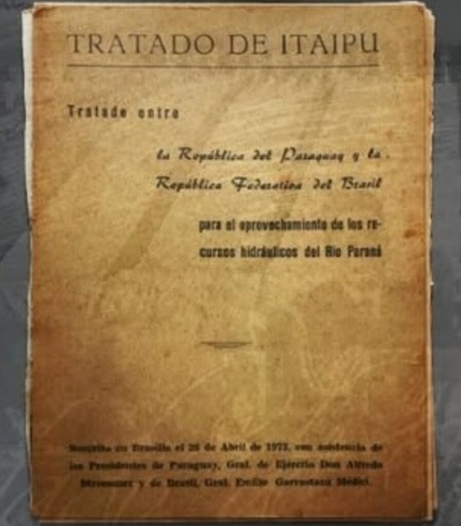 O acordo diplomático foi assinado durante as presidências de Alfredo Stroessner (Paraguai) e Emilio Garrastazu Médici (Brasil). O documento, assinado por ambos os chefes de Estado, estabeleceu as bases para a construção da maior usina hidrelétrica do mundo.