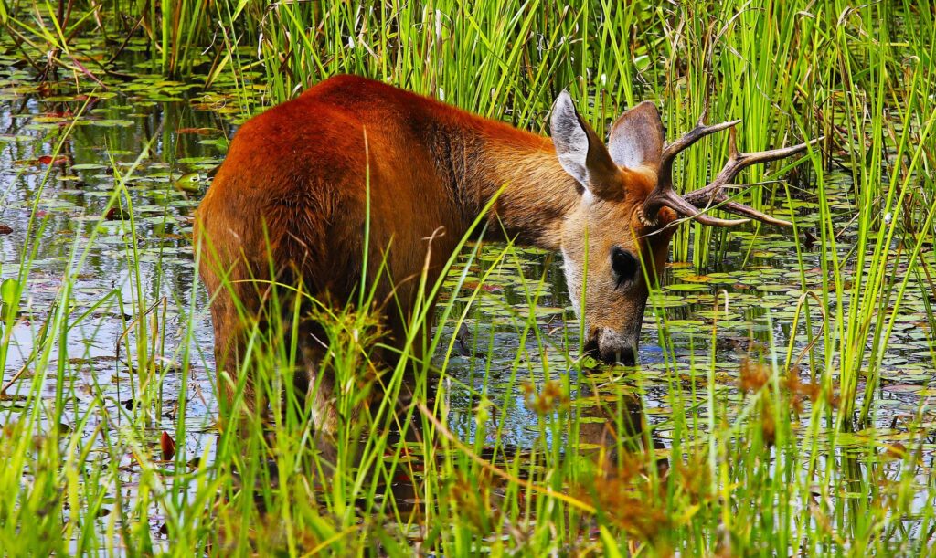 Nos vastos campos pantaneiros ou nas matas, a presença dos animais é comum e chama a atenção, comprovando que o ambiente saudável contribui para a conservação da fauna e da flora.