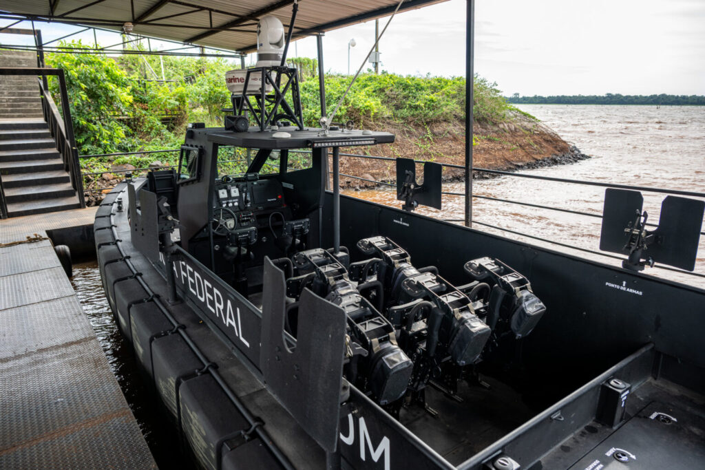 Uma lancha blindada, de alta velocidade e projetada para múltiplas funções, como interceptação e patrulhamento, é o mais novo equipamento da Polícia Federal em Foz do Iguaçu (PR). A embarcação chegou no último sábado (4) à base do Núcleo Especial de Polícia Marítima (Nepom), dentro do complexo da margem brasileira da Itaipu, e será utilizada prioritariamente no reservatório da usina, mas também poderá ser empregada nos rios Paraná e Iguaçu, conforme necessidade operacional.
